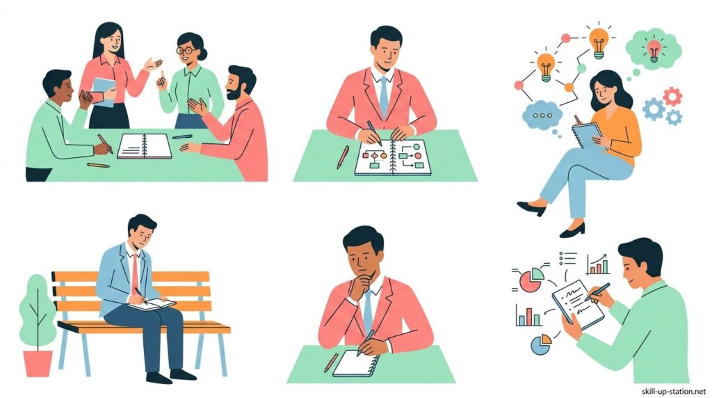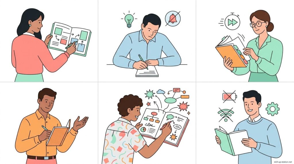 また、考えを整理しながら進める必要がある場面では、書く行為そのものが判断を助ける役割を果たします。この章では、ノート管理が効果を発揮しやすい具体的なケースについて整理します。