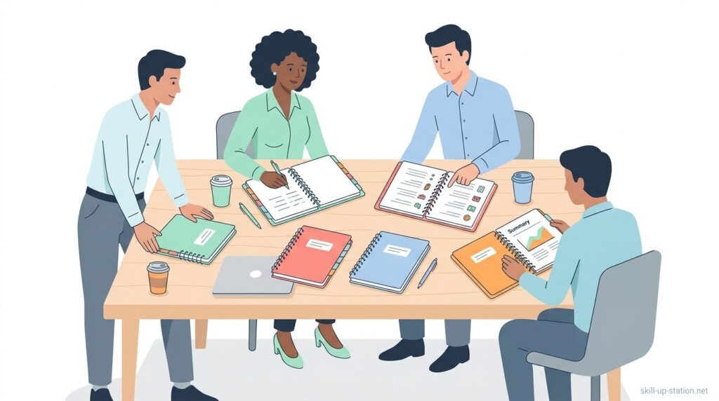 その後、各タスクごとに1ページを割り当て、上部にタスク名と担当者名、中央に作業手順を時系列で3〜7行に分けて記録し、下部に完了条件を「〇〇が提出されたら完了」と具体的に1文で定義します。作業を進める際は、1日1回、当日分のタスクページを開き、実施した内容を5行以内で追記し、完了したら日付とチェックマークを記入します。