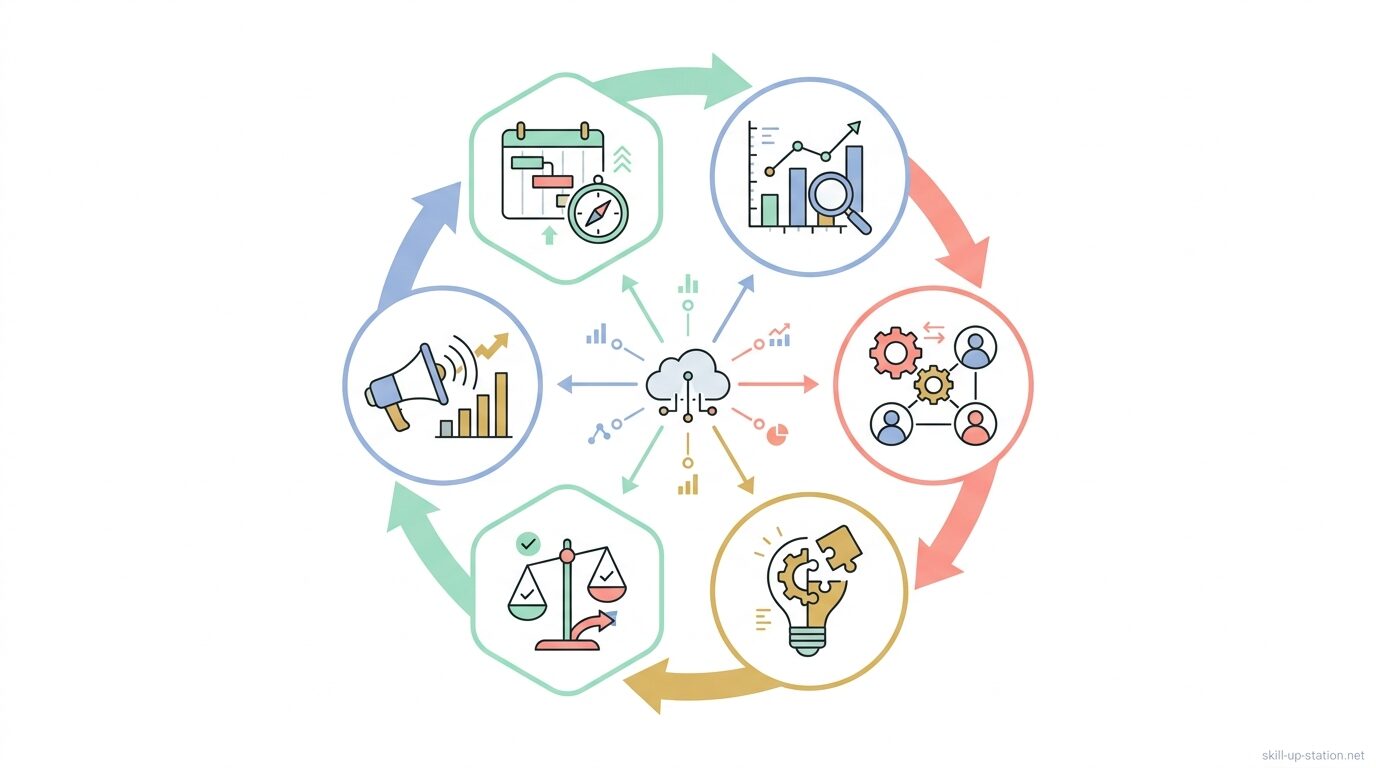 はじめに 「プロジェクトマネジメントに必要な能力って、具体的に何を身につければいいの?」「経験が浅いと、どのスキルから優先して伸ばすべきか分からない…」 そんな状態で、悩んでいませんか。 たとえば、進捗確認や会議の進行はしているのに、遅れや認識ズレが防げず、「自分のやり方で合っているのか」と不安になる場面もありますよね。 実は、プロジェクトマネジメントは「管理ができる人」ではなく、「状況に応じて複数のスキルを使い分けられるか」が重要になります。 この記事では、現場で求められる6つのスキルを具体的な行動レベ ...