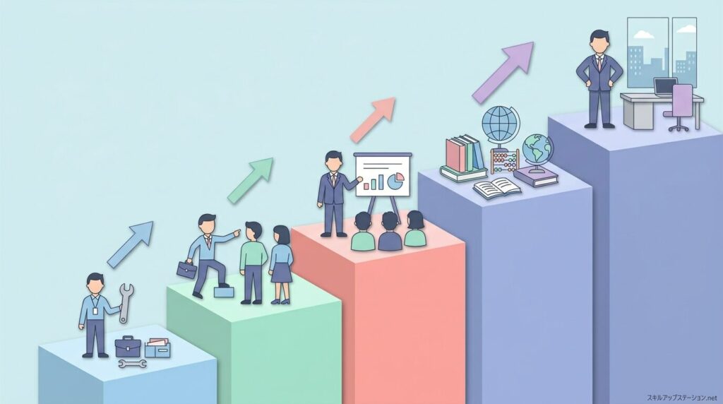 一般社員から主任・係長、課長と経験を積み、チームや部門の成果を管理できる実績を作ることで、部門を統括する役職である部長へ昇格します。部長の役割を理解することで、会社の役職構造や管理職に求められる仕事の内容を具体的にイメージできます。