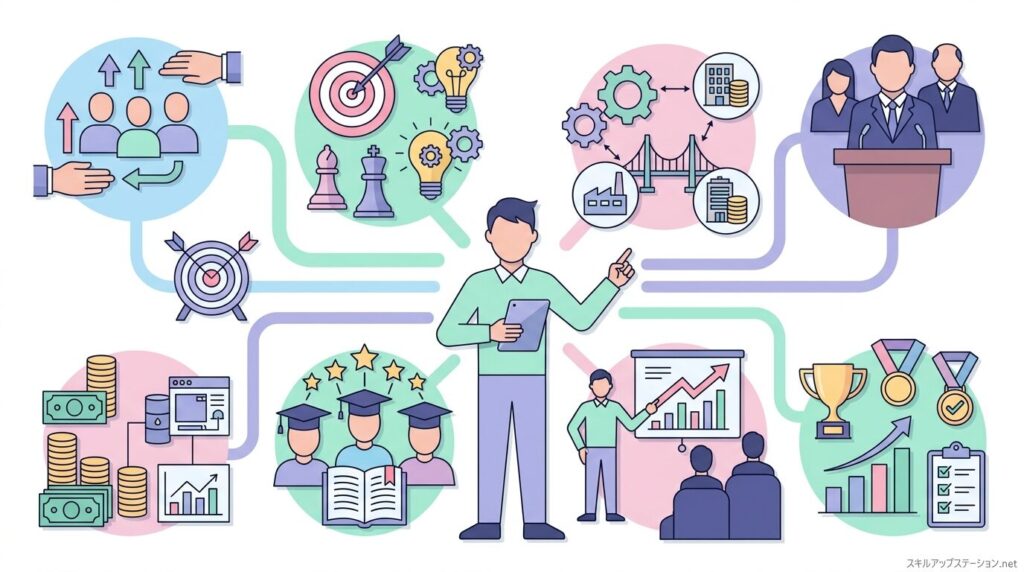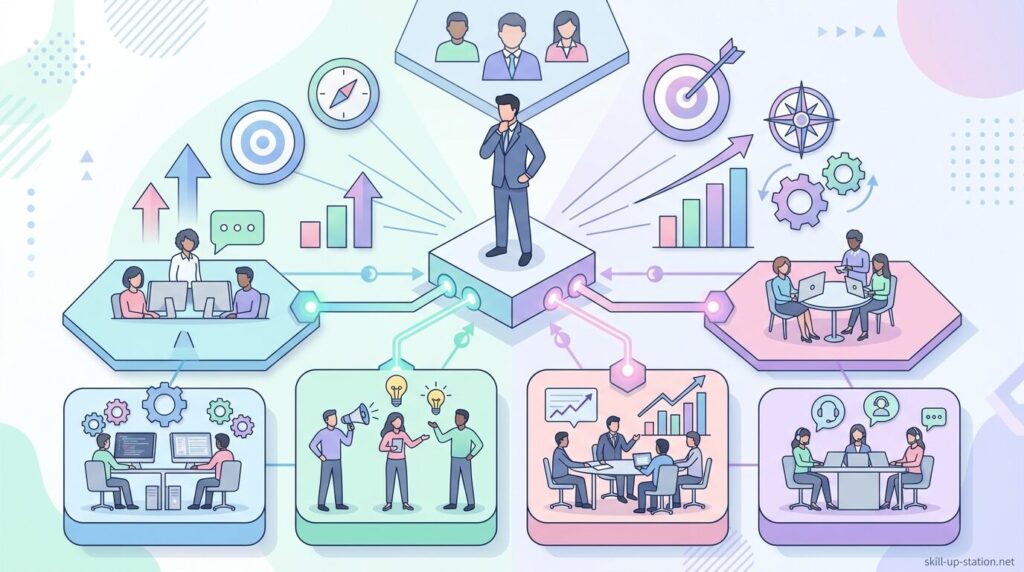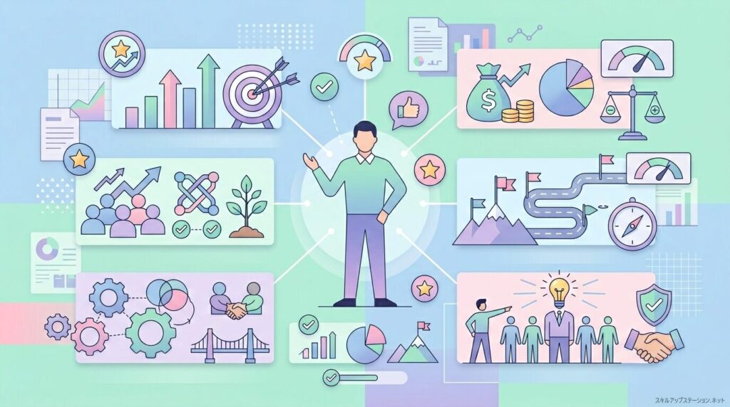 部長は、担当部門の売上や利益を管理しながら、組織を動かす判断を日々行う立場です。そのため、数字をもとに意思決定する力だけでなく、人材をまとめる力や複数の部署と調整する力も求められます。ここでは、部長として仕事を進めるうえで必要になる主なスキルと能力を整理します。