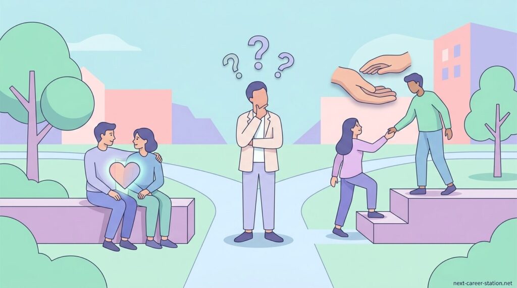 エンパシーとシンパシーの違いを理解しても、「実際の会話ではどっちを使えばいいの?」と迷う人は少なくありません。使い分けはシンプルで、相手に共感するならエンパシー、相手に同情するならシンパシーです。ここでは、共感する場面と同情する場面の違いを具体的に整理します。