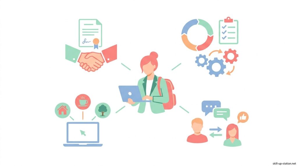 会社員PMは自社の上司や部門方針に従い、担当案件も会社から割り当てられますが、フリーランスPMは案件を自分で選びます。週5日常駐か週3日リモートか、契約期間を3ヶ月更新にするかなど、働き方の条件も自分で判断して契約します。