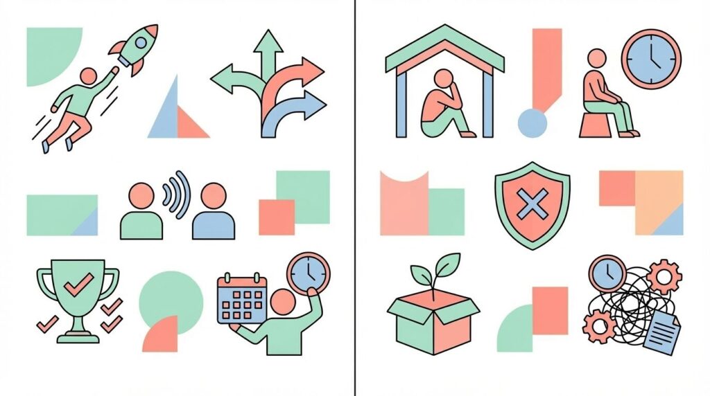 会社員PMは人事評価や昇進によって評価され、半年〜1年単位で判断されます。一方でフリーランスPMは、納期遅延が1週間発生した場合や品質不備が出た場合、次回契約更新が見送られるなど、評価が直接収入に影響します。
