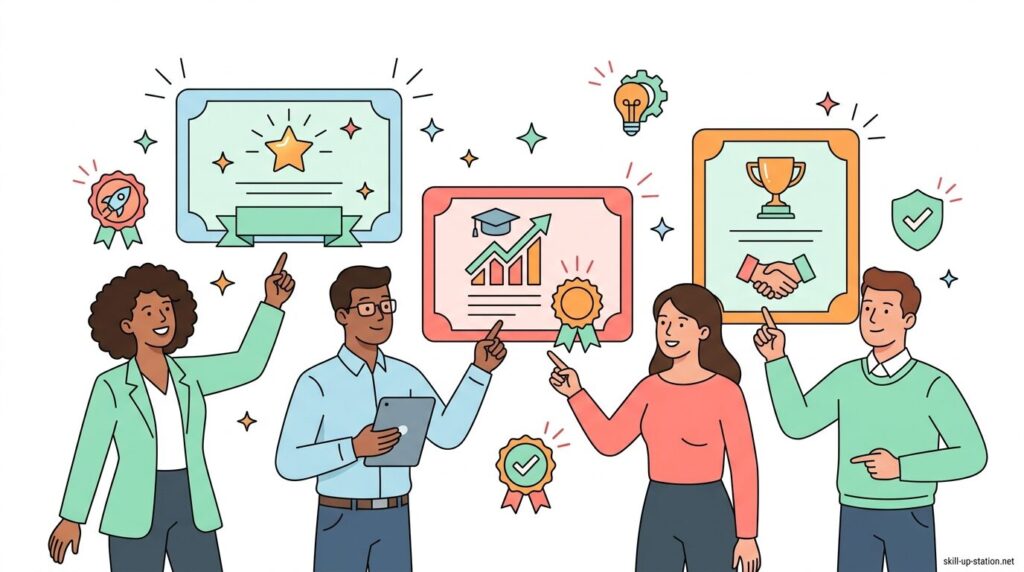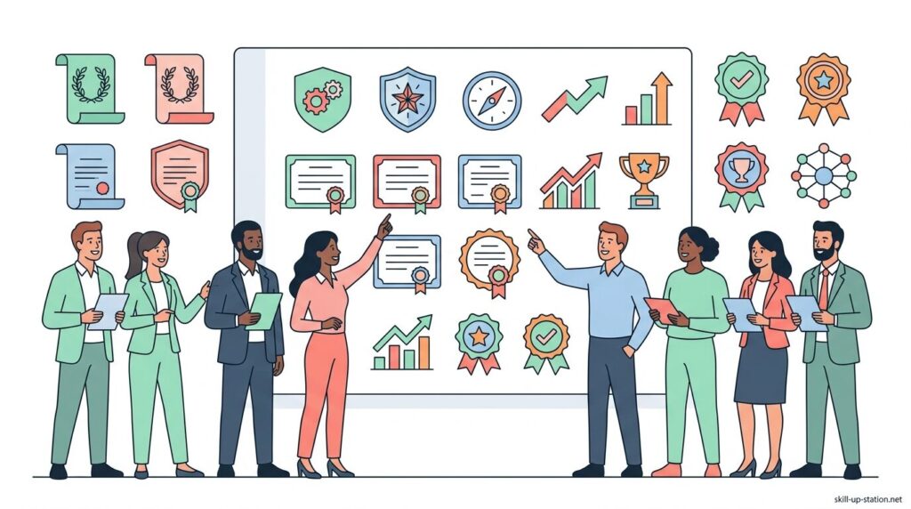プロジェクトマネジメント資格には、実務経験を前提とした国際資格、国内で体系的に学べる資格、IT分野に特化した資格など、目的やキャリアに応じて選べる複数の種類があります。まずは全体像を把握するために、代表的な資格の種類を整理していきます。