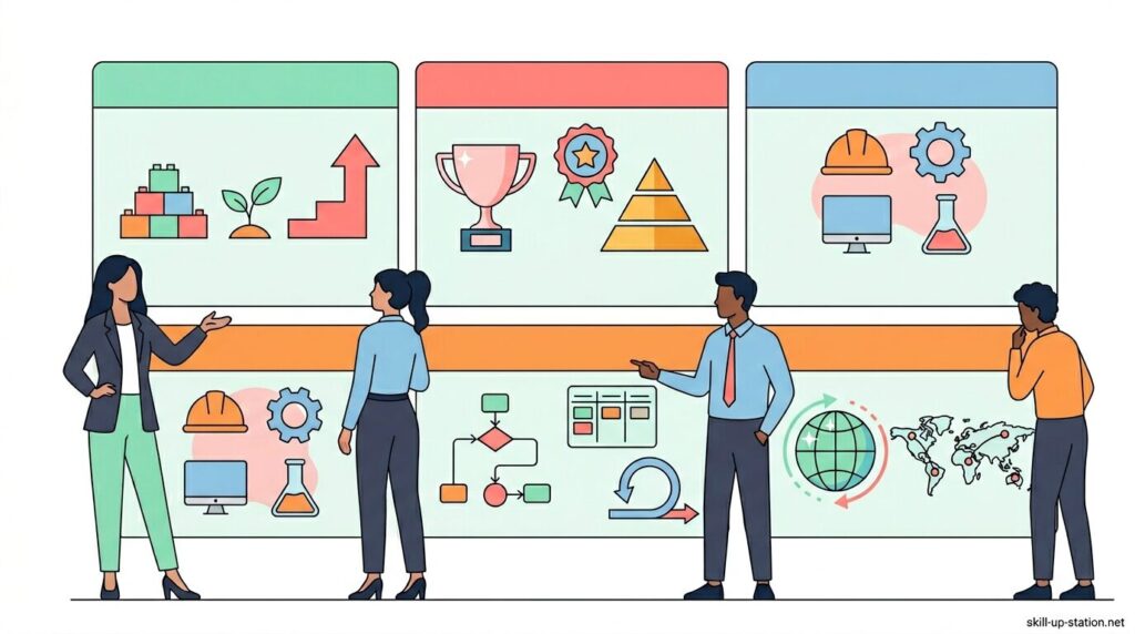 基礎資格でプロジェクト管理の流れを把握できるようになると、実務での作業手順と試験内容が一致するため、PMPやプロジェクトマネージャ試験といった上位資格への学習にそのまま移行できます。