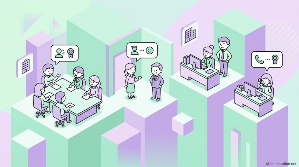 会議や打ち合わせで複数の課長が同席している場合は、姓に役職名を付けて「山田課長」「佐藤課長」のように呼びます。発言を求めるときは「山田課長、この資料の数値をご確認ください」と姓+役職で呼び、電話の取り次ぎでも「営業課の山田課長はいらっしゃいますか」と伝えます。姓を付けることで対象者を1人に特定できるため、同じ役職者が2人以上いる場面でも呼び間違いを防げます。