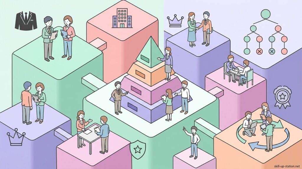 この記事では、管理職とはどのような立場なのかをはじめに整理したうえで、どのような役割を担うのか、日々どのような仕事をしているのか、そして一般社員との違いについて、順を追ってわかりやすく解説していきます。会社の中で管理職がどのように組織を動かしているのかを、具体的なイメージとともに理解できる内容になっています。