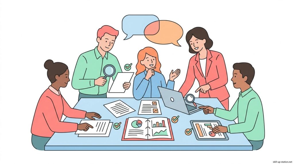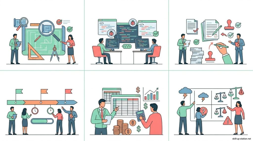 プロジェクトマネジメントにおけるレビューは、成果物や進行状況を計画や要件と照合し、その時点での状態を正確に判断するために行われます。設計書や仕様書の内容を1項目ずつ確認し、進捗率や完了日を数値で把握することで、不整合や遅延をその場で特定できます。