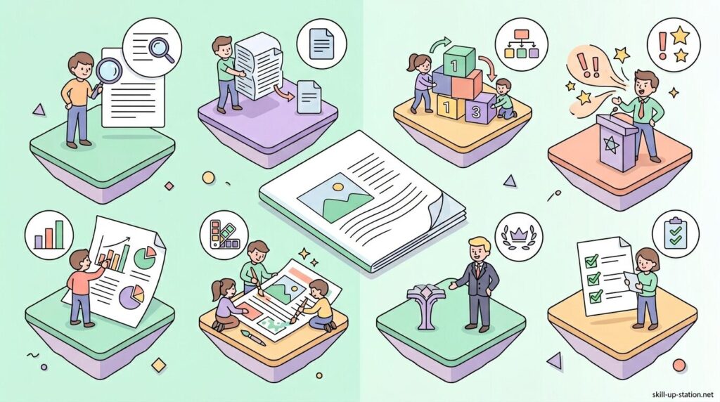 また、ビジネスや研究の場では、企画書だけでなくレポートやディスカッションペーパーなど複数の資料が使われます。それぞれの違いを整理して理解しておくと、状況に応じて適切な文書を作成できるようになります。