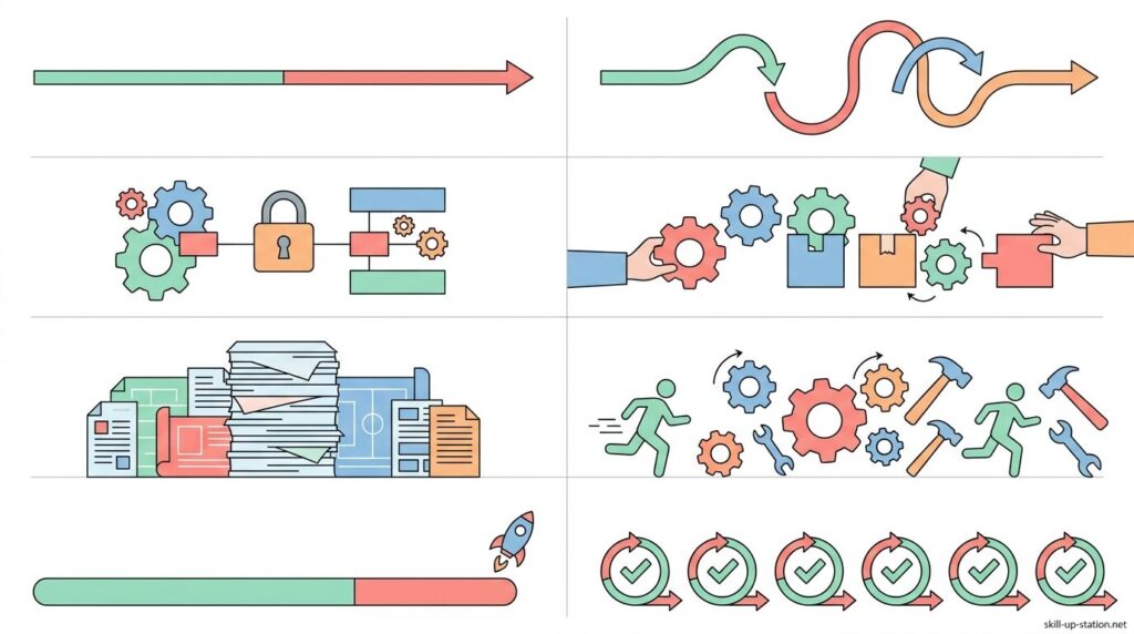 たとえば、工程を順番に進める方法もあれば、短いサイクルで改善を繰り返す方法もあり、目的やプロジェクトの特性によって適切な選択は変わります。