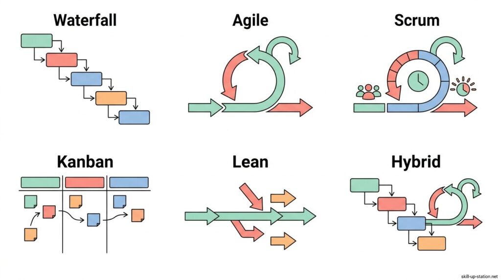 プロジェクトマネジメントには複数の方法論が存在し、それぞれ進め方や管理の考え方が大きく異なります。
