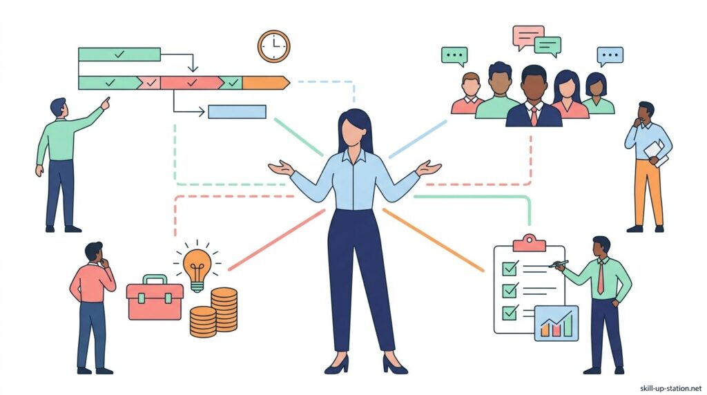作業の進み具合を時間軸で把握し、予算内に収めながら、成果物の品質を維持しつつ、想定外のトラブルにも対応できる状態を保つことが求められます。
