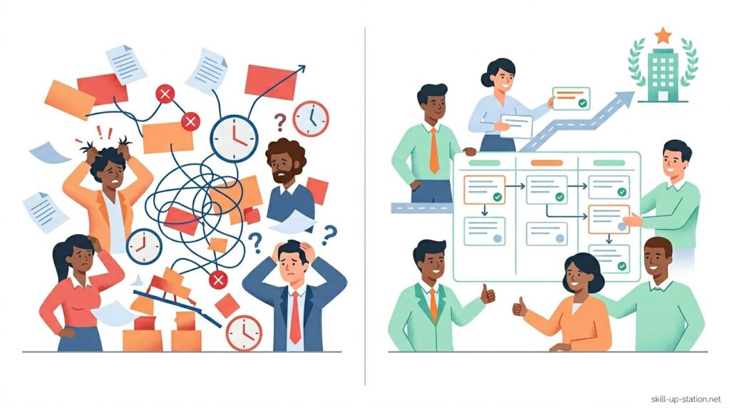 仕事で新しい案件を任されたときや、チームで何かを進めることになったとき、「何から手をつければいいのか分からない」「気づいたらスケジュールが遅れている」といった場面は少なくありません。