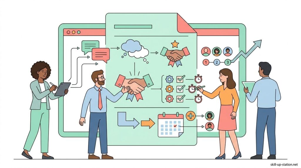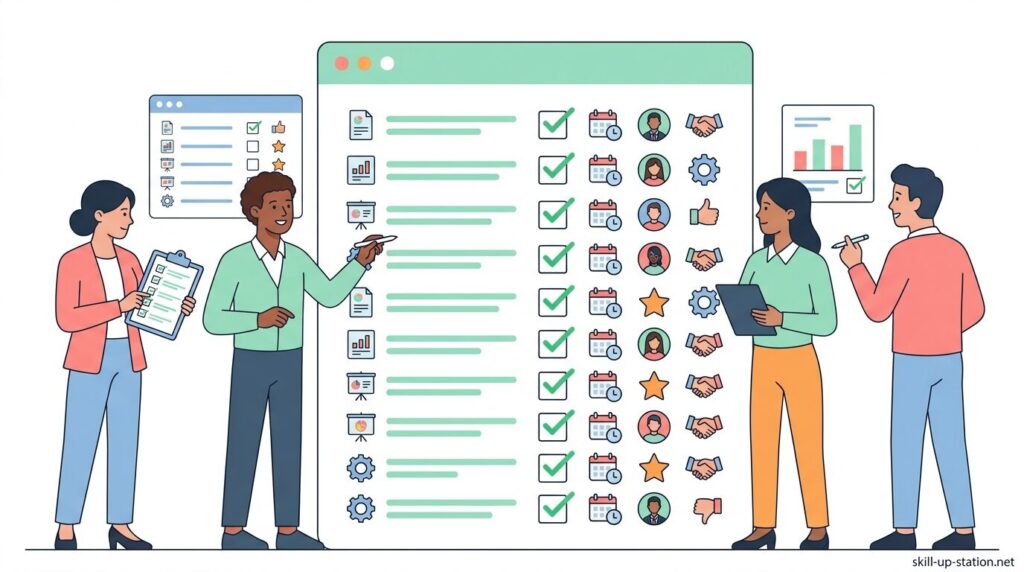 作業範囲は機能単位や工程単位で明文化し、対象外の範囲も同時に記載して判断基準を固定します。担当者はタスクごとに1名を割り当て、責任範囲を重複させない形で記録します。
