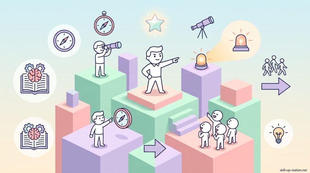 リーダーは単に役職名ではなく、チームを前に進めるための具体的な行動を担う存在です。組織の中では、進むべき方向を示すこと、メンバーをまとめて行動を促すこと、そして目標達成に向けてチーム全体を動かすことが求められます。ここでは、リーダーが実際の現場で担う主な役割を順番に見ていきます。