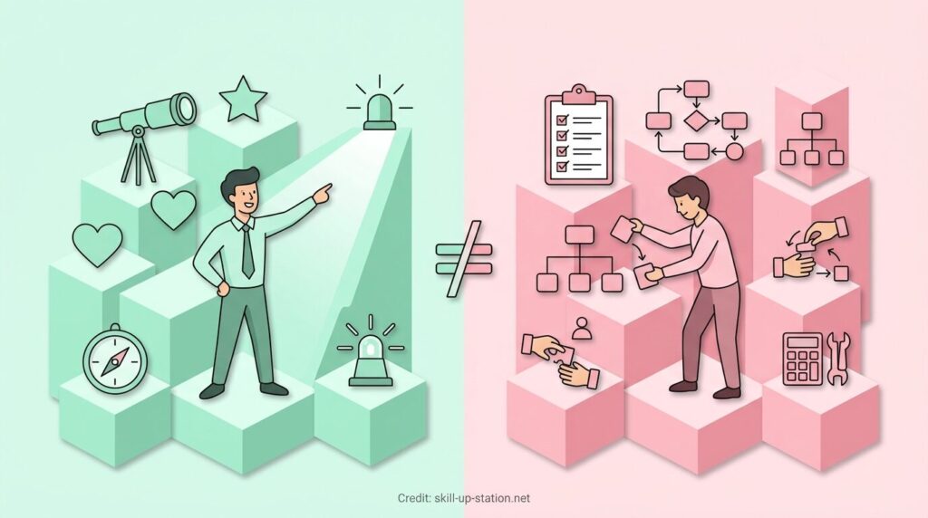 リーダーとマネージャーは似た立場として語られることが多いですが、担う役割には明確な違いがあります。リーダーはチームが進む方向を示す役割を持ち、マネージャーは目標達成に向けて成果や業務の進行を管理する役割を担います。ただし、実際の職場ではこの二つの役割を同じ人が兼ねているケースも少なくありません。ここでは、それぞれの役割の違いを整理して見ていきます。