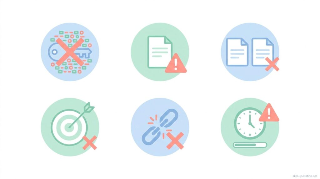 実際、上位表示できない記事の多くは、文章力よりもこうした基本的なズレが原因です。ここでは、SEOライティングで初心者が特につまずきやすい失敗を整理しながら、なぜうまくいかないのかを順を追って説明していきます。