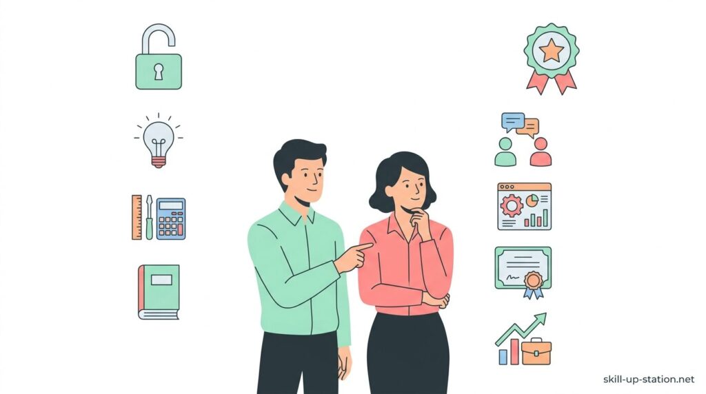 実際に、通勤中の電車で1日20分だけ動画講義を視聴したり、自宅で週に2〜3回、1回あたり30分〜60分ほどの学習時間を確保したりと、自分の生活リズムに合わせて学べるのがオンライン講座の特徴です。とはいえ、講座ごとに学習時間の目安やサポート体制、扱う内容の深さが大きく異なるため、「どれを選べばいいのか分からない」と迷ってしまうこともあります。