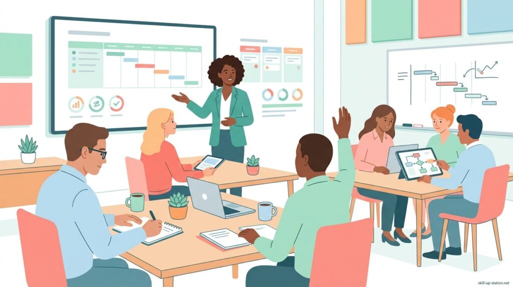 例えば、担当タスクを5個〜20個管理するレベルであれば、基礎的なタスク分解や進捗管理を中心にした6時間〜12時間程度の講座を選ぶことで、日単位でのスケジュール管理を実務にそのまま適用できます。