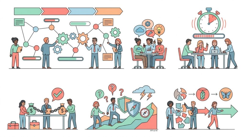 「プロジェクトマネジメントって導入すると何が変わるの?」「時間やコストをかける価値が本当にあるの?」と感じていませんか。たとえば、タスクの抜け漏れが続いて納期がずれたり、担当者ごとに進め方がバラバラで状況が把握できず、毎回の打ち合わせが確認作業で終わってしまう場面もありますよね。