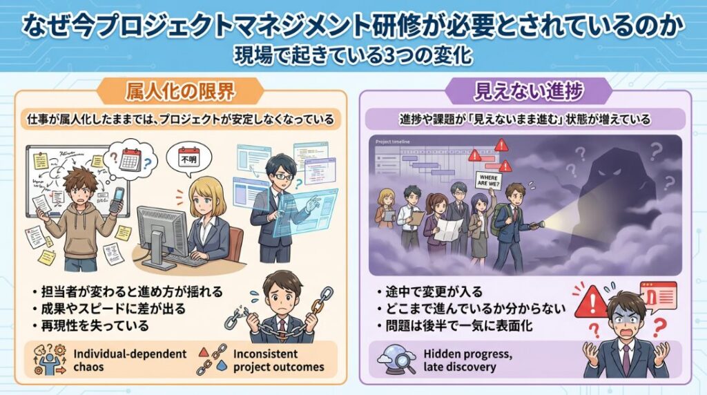 そもそも、なぜ今プロジェクトマネジメント研修が必要とされているのか