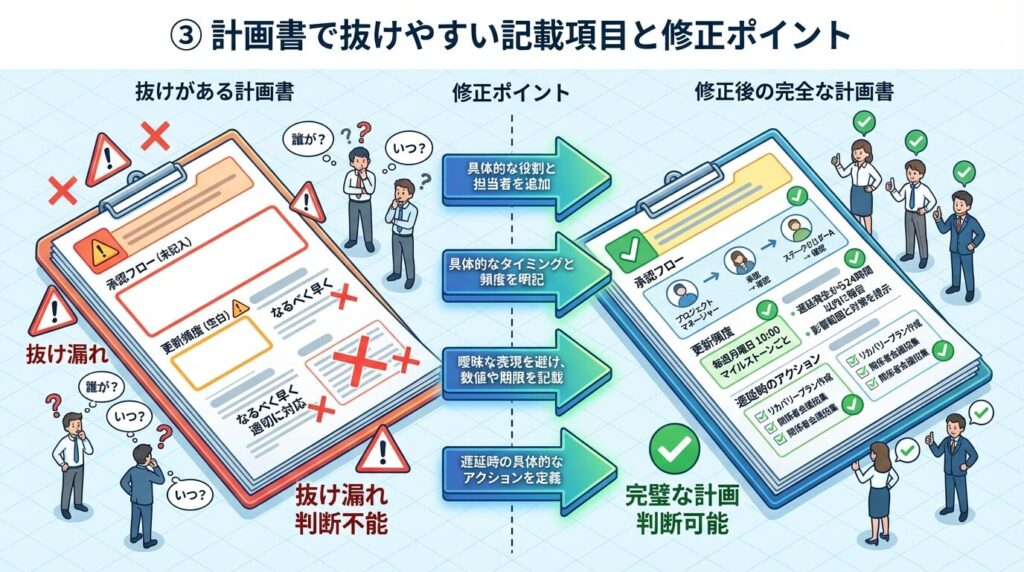 ③ 計画書で抜けやすい記載項目と修正ポイント