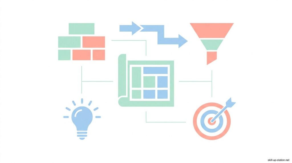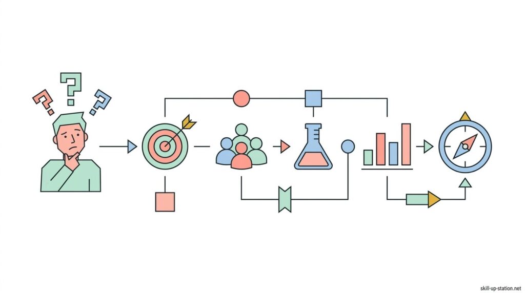 途中で手を止めないためにも、「何をどの段階でやるのか」をあらかじめ決めておくことが重要です。ここでは、無駄な遠回りを避けながら進めるための具体的な学習ステップを、順番に整理していきます。