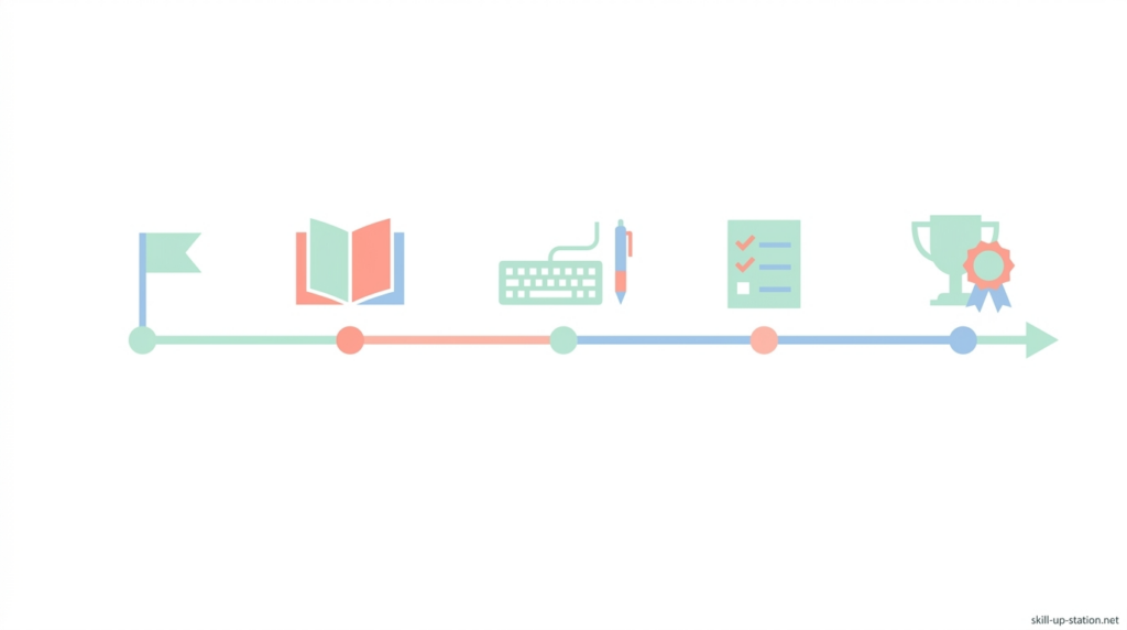 効率よく進めるためには、最初にやるべきことを整理し、必要な知識を先に身につけたうえで、最後に問題演習で定着させる流れが重要です。ここでは、独学で最短合格を目指すための勉強手順を、順を追って説明していきます。