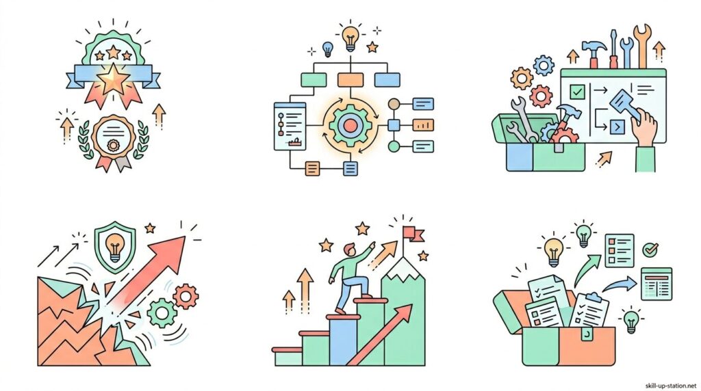 | 実用性 | 実務の進め方に沿った構成で、日単位・タスク単位でそのまま適用できる判断基準を理解できる |