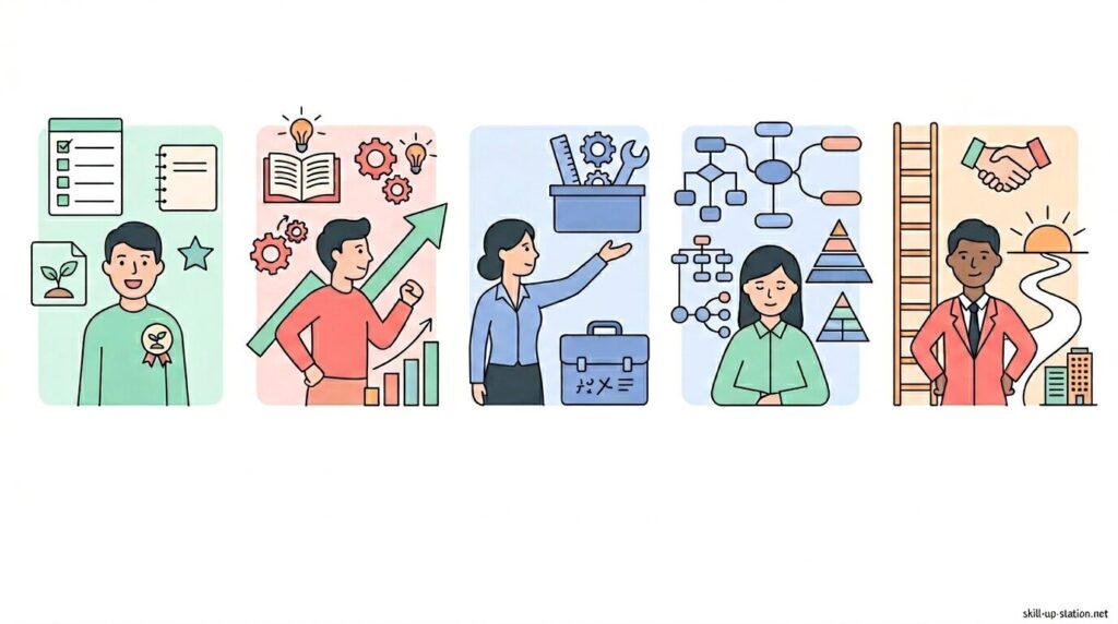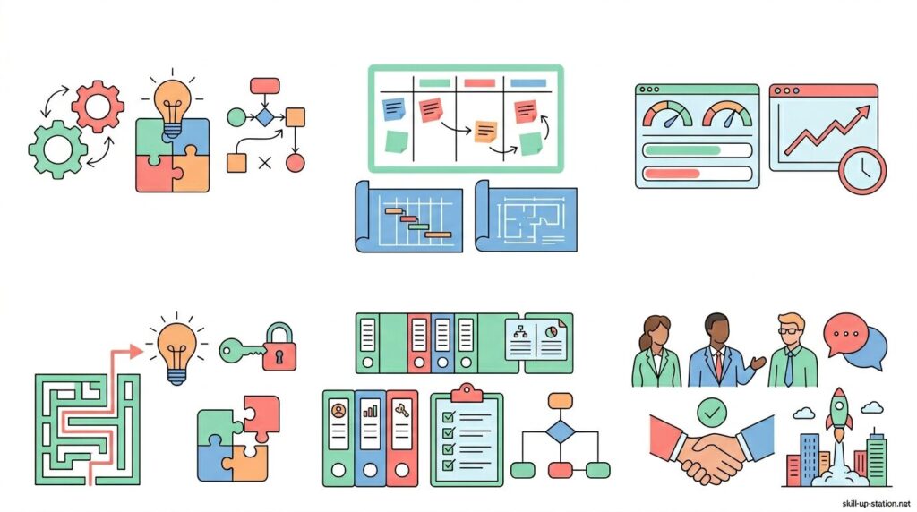 プロジェクトを初めて任され、何を基準に判断すればよいか分からない人や、関係者との認識ズレや進捗遅延が発生しても意思決定や立て直しができずに止まってしまう人に向いています。